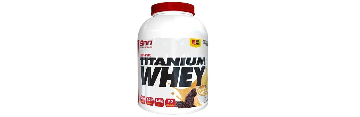 Titanium Whey è un integratore prodotto dalla multinazionale americana SAN. La confezione contiene proteine del siero di latte, destinate sia agli atleti professionisti che ai principianti, alle prese con gli inizi della propria avventura con gli allenamenti di forza. L'uso regolare di Titanium Whey porta ad un aumento della resistenza fisica e della massa muscolare. Il prodotto è una fonte preziosa di proteine animali sane. Gli amminoacidi contenuti nell'integratore contribuiscono alla formazione delle fibre muscolari.